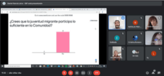 Partners from the different countries where the headquarters of the collaborating entities are located gathered at the headquarters of Solidaridad Sin Fronteras (Spain). The event, held online as a preventive measure due to the Covid-19 situation, was attended by students from high schools involved in the project at the local level, the project's guidance counsellor and other young people and professionals of the social scope; 53 participants in total.